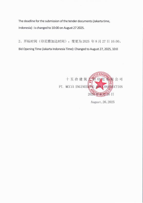 十五冶建筑工程(印尼)有限公司阿曼项目WIPRO TOOLS(工机具)采购变更公告