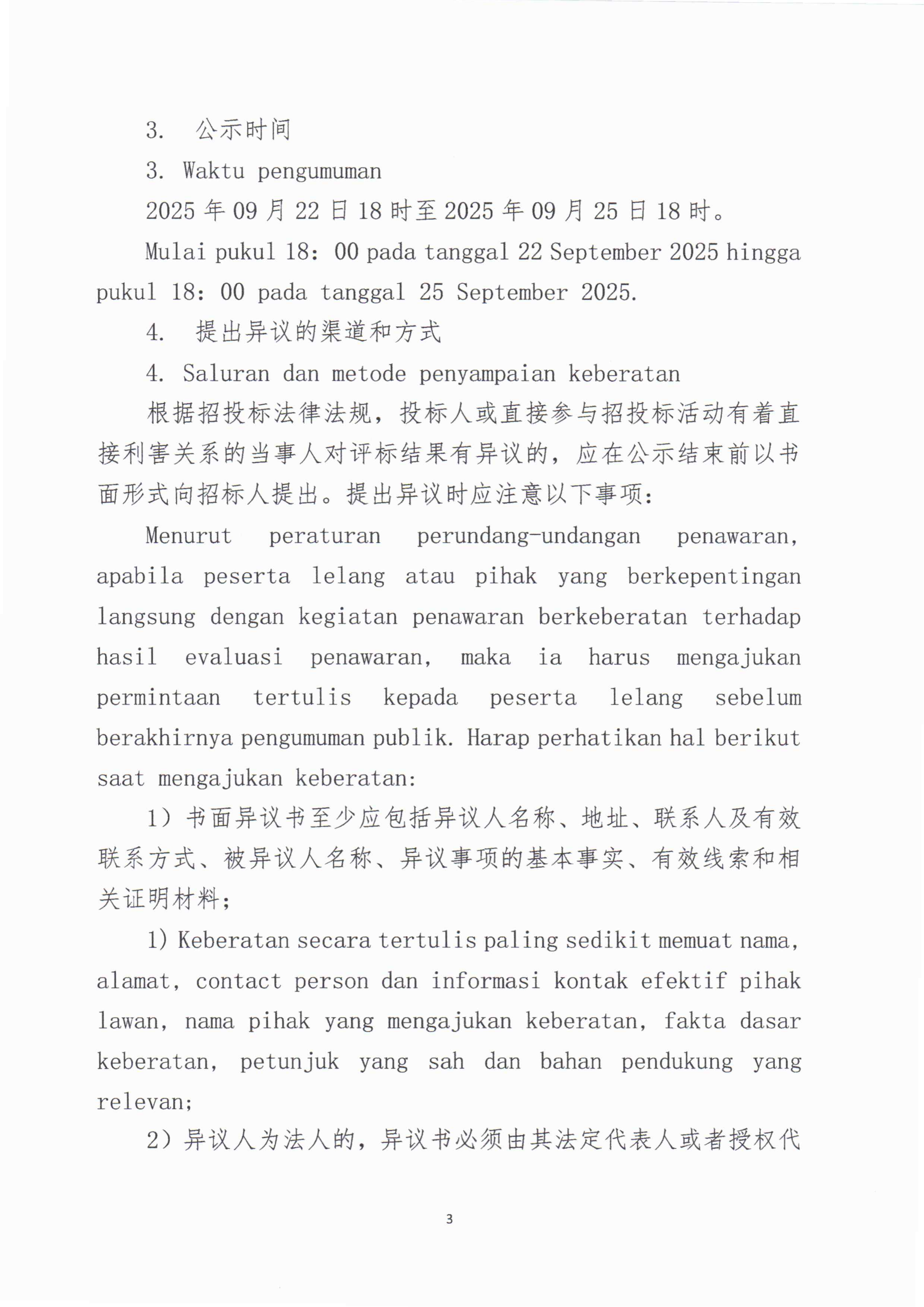 印尼阿曼 BatuHijau 铜选厂扩建项目商务技术服务中标结果公告