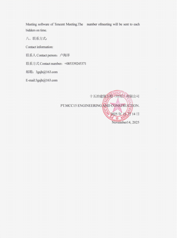 十五冶建筑工程 ( 印尼 ) 有限公司阿曼项目钢材采购询比公告