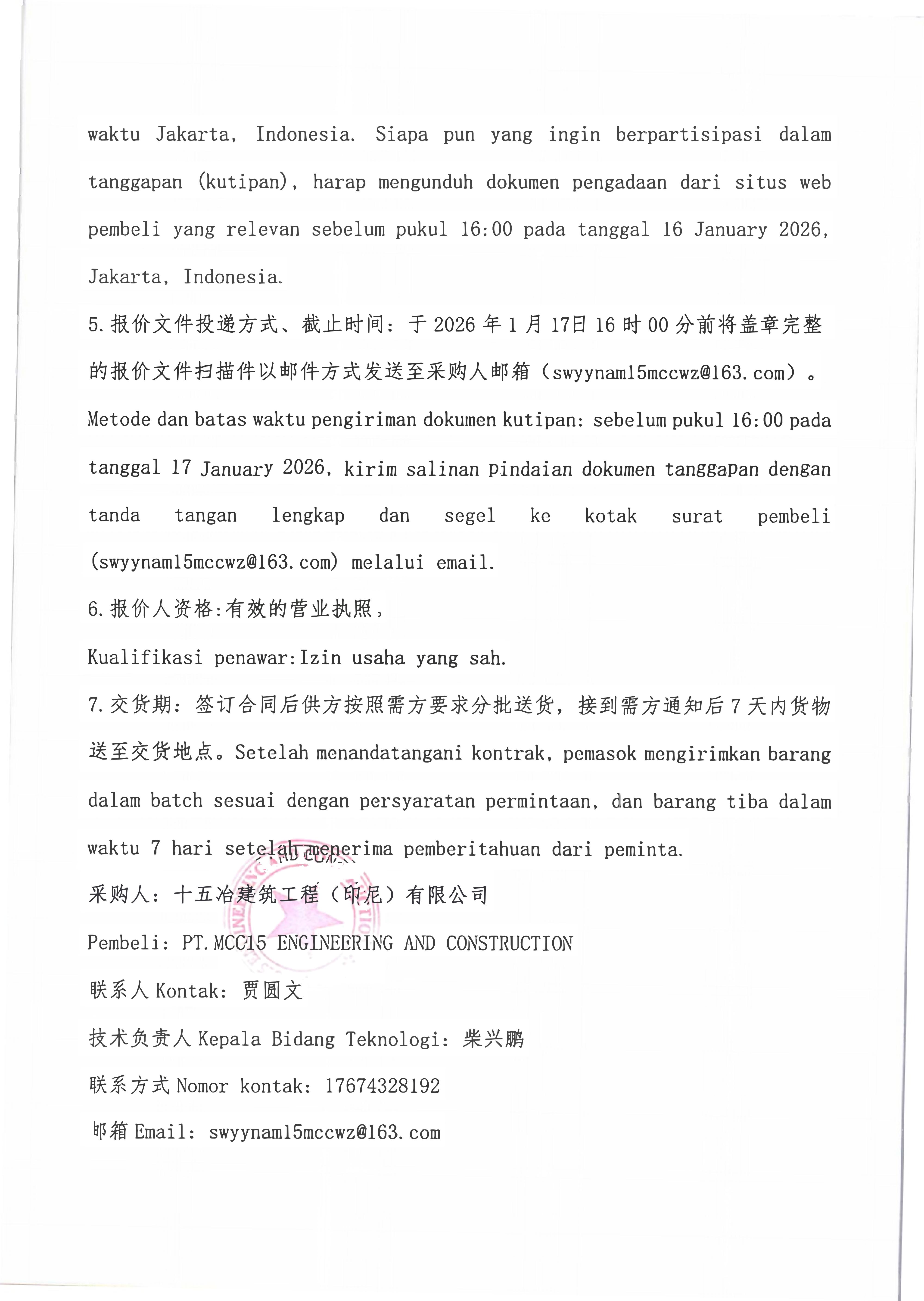 十五冶建筑工程 ( 印尼 ) 有限公司阿曼项目钢材采购询比公告